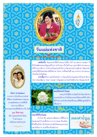 ให้ถือเอาวันเสด็จพระราชสมภพ ได้กับความรักอันบริสุทธิ์ของแม่ที่มีต่อลูกไม่มีวัน