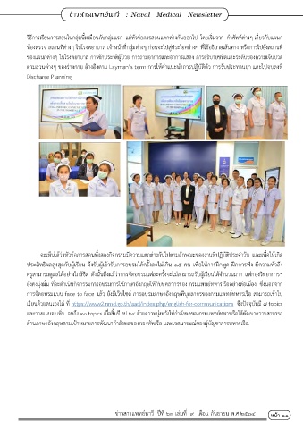 ยังคงมุ่งมั่น ที่จะด�าเนินกิจกรรมการอบรมการใช้ภาษาอังกฤษให้กับบุคลากรของ กรมแพทย์ทหารเรืออย่างต่อเนื่อง ซึ่งนอกจาก