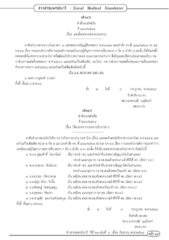 แทนในนามผู้บัญชาการทหารเรือ ผนวก ก ข้อ ๑ ล�าดับ ๑๐๐ ฉะนั้น จึงให้นายทหารประทวนรับราชการ ดังต่อไปนี้