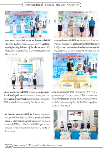 ข�ำวำที หัวหน้ำมูลนิธิ รพ.ฯ รับมอบเงิน จ�านวน ๒๐๐,๐๐๐ บาท ชุด Alochol gel จ�านวน ๔ gallon น�้าดื่มจ�านวน ๓๑ แพค