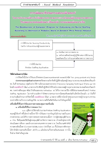 Staffing Application ในการค�านวณอัตราก�าลังพยาบาลตามภาระงานในคอมพิวเตอร์แท็บเล็ตเรียบร้อยแล้ว ๓) ยินดีให้