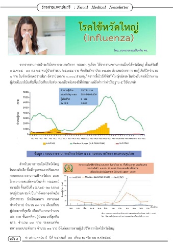 ส�าหรับสถานการณ์โรคไข้หวัดใหญ่ สถานการณ์โรคไข้หวัดใหญ่ พ.ศ.2565 ในก�าลังพล ทร. พื้นที่กรุงเทพฯ และปริมณฑล