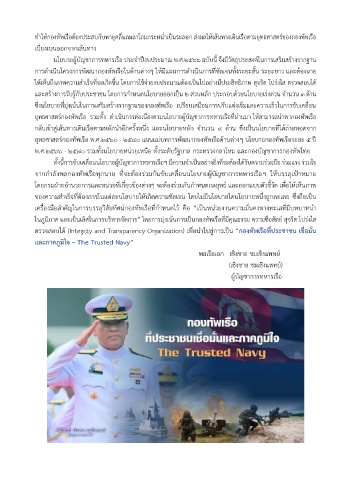 ตรวจสอบได้ (Integrity and Transparency Organization) เพื่อน�าไปสู่การเป็น “กองทัพเรือที่ประชาชน เชื่อมั่น