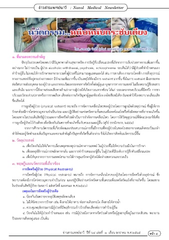 ทางการแพทย์ที่อยู่ตามร่างกายออก มีจ�านวนเพิ่มมากขึ้น เป็นเหตุให้ต้องมีการ restraint มากขึ้น ซึ่งในการ restraint มีผลกระทบ