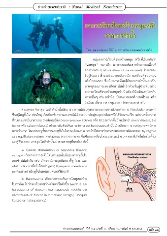bends หรือ caisson disease) หรืออาจสัมพันธ์กับภาวะ inner ear barotrauma ดังนั้นเมื่อเกิดอาการ vertigo แพทย์ควร