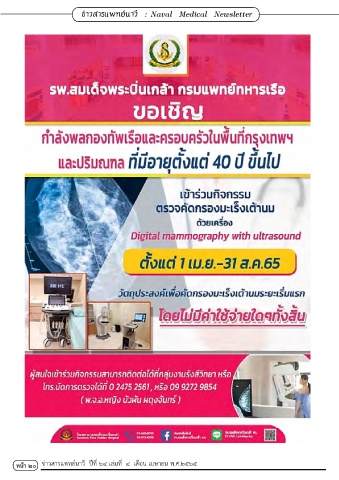 ข่าวสารแพทย์นาวี : Naval Medical Newsletter หน้า ๒๐ ข่าวสารแพทย์นาวี ปีที่ ๖๔ เล่มที่ ๔ เดือน เมษายน พ.ศ.๒๕๖๕