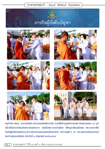 หนา ๔ ข่าวสารแพทย์นาวี ปีที่ ๖๔ เล่มที่ ๗ เดือน กรกฎาคม พ.ศ.๒๕๖๕