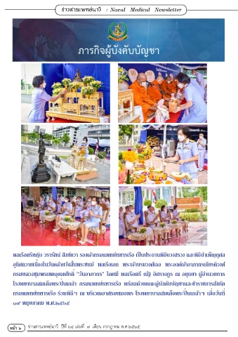หนา ๖ ข่าวสารแพทย์นาวี ปีที่ ๖๔ เล่มที่ ๗ เดือน กรกฎาคม พ.ศ.๒๕๖๕