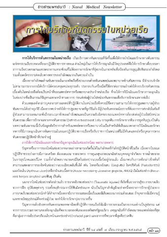การใหบริการทันตกรรมในหนวยเรือ เป็นบริการทางทันตกรรมที่จัดขึ้นเพื่อให้การบ�าบัดและรักษาทางทันตกรรม