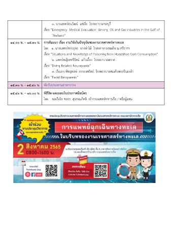 ๑๔.๐๐ น. – ๑๕.๓๐ น. การสัมมนา เรื่อง งานวิจัยในปจจุบันของงานเวชศาสตร์ทางทะเล