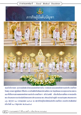 หน้า ๒ ข่ำวสำรแพทย์นำวี ปีที่ ๖๔ เล่มที่ ๘ เดือน สิงหำคม พ.ศ.๒๕๖๕