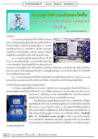 ๒.๓ การตรวจสอบอุณหภูมิของวัคซีนที่เก็บในหีบเย็นหรือกระติกวัคซีนให้อยู่ในช่วงที่ก�าหนด โดยให้บรรจุ ice pack