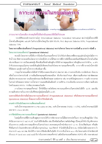 ภาวะโรคเบาหวานขณะตั้งครรภ์ นี้ท�าให้มีโอกาสเกิดโรคเบาหวานขณะตั้งครรภ์ในครรภ์ต่อไปได้ถึง ๔๐% และเพิ่ม