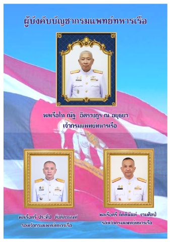 ผู้บังคับบัญชากรมแพทย์ทหารเรือ พลเรือโท ณัฐ อิศรางกูร ณ อยุธยา เจ้ากรมแพทย์ทหารเรือ พลเรือตรี ประทีป ตังติสานนท์ พลเรือตรี กิตตินันท์ งามศิลป์ รองเจ้ากรมแพทย์ทหารเรือ รองเจ้ากรมแพทย์ทหารเรือ