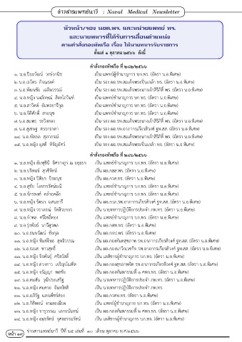 ๑. น.อ.หญิง อัมพุชินี อิศรางกูร ณ อยุธยา เป็น แพทย์ช�านาญการ บก.พร. (อัตรา น.อ.พิเศษ)