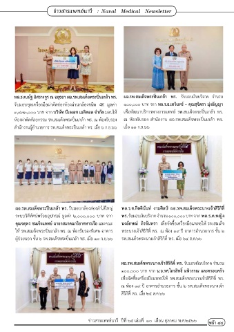 พล.ร.ต.ณัฐ อิศรางกูร ณ อยุธยา ผอ.รพ.สมเด็จพระปิ่นเกล้า พร. ผอ.รพ.สมเด็จพระปิ่นเกล้า พร. รับมอบเงินบริจาค จ�านวน