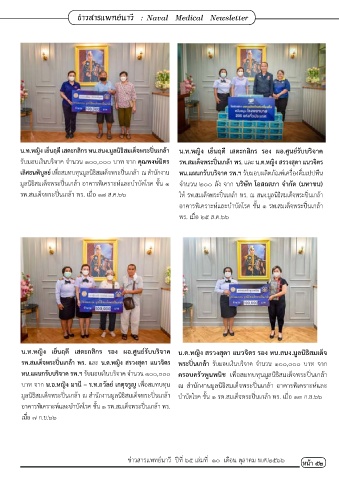 รพ.สมเด็จพระปิ่นเกล้า พร. และ น.ต.หญิง สรวงสุดา แนวจิตร พระปิ่นเกล้า รับมอบเงินบริจาค จ�านวน ๑๐๐,๐๐๐ บาท จาก