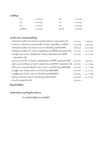 • รองผู้อ�านวยการกองตรวจโรคผู้ป่วยนอก โรงพยาบาลสมเด็จพระนางเจ้าสิริกิติ์ ๑ ต.ค.๔๖ - ๓๐ ก.ย.๔๘