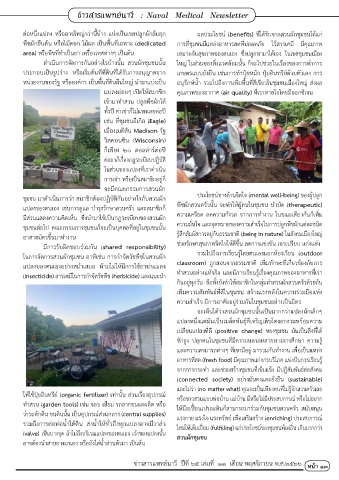 แปลงของตนเองอย่างสม�่าเสมอ ห้ามไม่ให้มีการใช้ยาฆ่าแมลง classroom) ถูกสอนจากธรรมชาติ เพิ่มทักษะที่เกี่ยวข้องกับการ