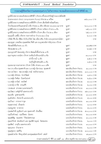 - มูลนิธิโรงพยาบาลสมเด็จพระนางสิริกิติ์ฯ บริจาค เตียง จ�านวน ๑ เตียง มูลค่า ๖๕,๐๐๐ บาท