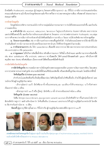 ๒. รักษาภาวะแทรกซ้อน เช่น หากมีการแพร่กระจายของเชื้องูสวัดทั่วตัว จ�าเป็นต้องนอนโรงพยาบาลให้ยาฆ่าเชื้อไวรัส