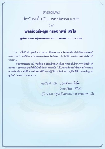 ในวาระขึ้นปีใหม่ พุทธศักราช ๒๕๖๖ ดิฉันขอส่งความปรารถนาดีมายังก�าลังพลกรมแพทย์