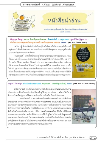 ที่ส่งผลกระทบทั้งบุคคลและสังคมโดยรวม เนื้อหาในเล่มได้อธิบายค�าย่อของ NCDs ว่ามาจาก