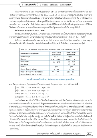 ค่าที่ได้จะจ�าแนกผู้ใหญ่ออกเป็นกลุ่มต่างๆ (ตารางที่ ๑) โดยองค์การอนามัยโลกได้แยกคนเอเซียจากกลุ่มมาตรฐาน