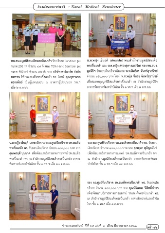 ขนาด 250 ml จ�านวน ๔๗ ลัง และ 70% Hand Sanitizer gel พระปิ่นเกล้า และ น.ต.หญิง สรวงสุดา แนวจิตร รอง หน.สนง.