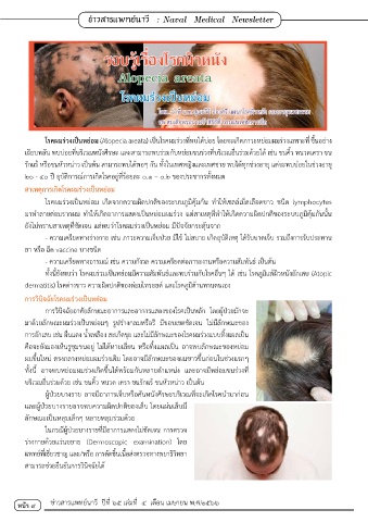 ทั้งนี้ อาจพบหย่อมผมร่วงเกิดขึ้นได้พร้อมกันหลายต�าแหน่ง และอาจมีหย่อมขนร่วงที่