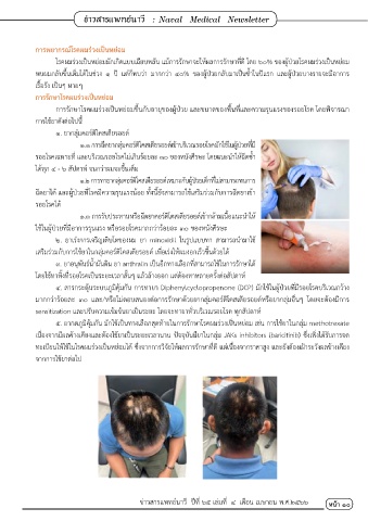 รอยโรคเฉพาะที่ และบริเวณรอยโรคไม่เกินร้อยละ ๓๐ ของหนังศีรษะ โดยแนะน�าให้ฉีดซ�้า