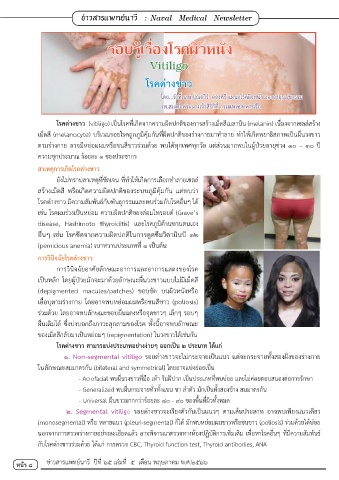 ๑. Non-segmental vitiligo รอยด่างขาวจะไม่กระจายเป็นแนว แต่จะกระจายทั้งสองฝั่งของร่างกาย
