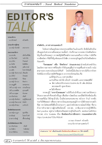 บรรณาธิการผู้ช่วย สวัสดีครับ...ชาวข่าวสารแพทย์นาวี