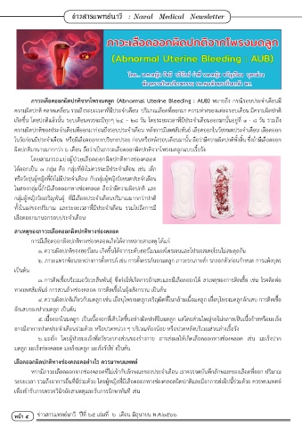 ภาวะเลือดออกผิดปกติจากโพรงมดลูก (Abnormal Uterine Bleeding : AUB) หมายถึง กรณีรอบประจ�าเดือนมี