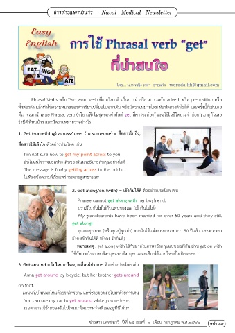 หมายเหตุ : get along with ใช้กันมากในภาษาอังกฤษแบบอเมริกัน ส่วน get on with