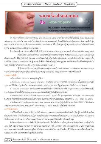 sebaceous glands) ปริมาณมาก เช่น ใบหน้า ล�าตัวส่วนบน และแผ่นหลัง สิวพบได้ทั้งในเพศหญิงและชาย มักพบบ่อยในวัยรุ่น