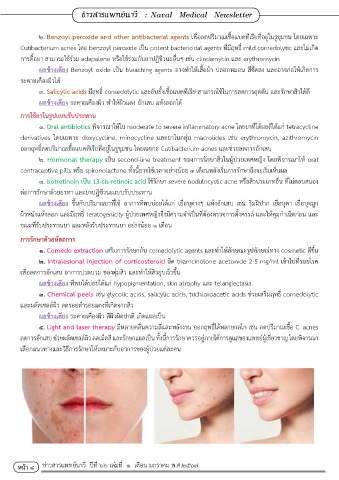 ๒. Benzoyl peroxide and other antibacterial agents เพื่อลดปริมาณเชื้อแบคทีเรียที่อยู่ในรูขุมขน โดยเฉพาะ