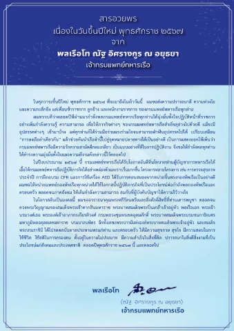 ผมทราบดีว่าตลอดปีทีผ่านมาก�าลังพลกรมแพทย์ทหารเรือทุกท่านได้มุ่งมั่นตั้งใจปฏิบัติหน้าที่ราชการ