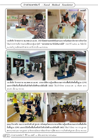 ร.ต.พีรธัช จิราตระกาล หน.ชพค.ฉก.นย.ทร. บรรยายให้ความรู้และฝึกอบรมการช่วยฟื้นคืนชีพขั้นพื้นฐาน (CPR)