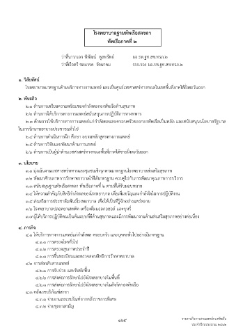 ๒.๓ ด้านการให้บริการทางการแพทย์แก่ก�าลังพลและครอบครัวของกองทัพเรือเป็นหลัก และสนับสนุนนโยบายรัฐบาล