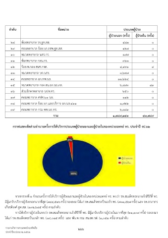 กรำฟแสดงสัดส่วนจ�ำนวนครั้งกำรให้บริกำรประเภทผู้ป่วยนอกและผู้ป่วยในของหน่วยแพทย์ ทร. ประจ�ำปี งป.๖๒
