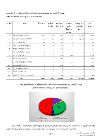 จากตารางที่ ๓ จ�านวนครั้งการให้บริการผู้ป่วยใน ของหน่วยแพทย์ ทร. พบว่าบ�านาญ ทร. ครอบครัว ทร. มาใช้บริการผู้ป่วยใน