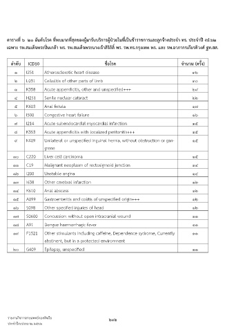 ตำรำงที่ ๖ ๒๐ อันดับโรค ที่พบมำกที่สุดของผู้มำรับบริกำรผู้ป่วยในที่เป็นข้ำรำชกำรและลูกจ้ำงประจ�ำ ทร. ประจ�ำปี งป.๖๒