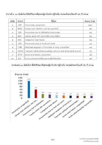 ตำรำงที่ ๗ ๑๐ อันดับโรค ที่เสียชีวิตมำกที่สุดของผู้มำรับบริกำรผู้ป่วยใน รพ.สมเด็จพระปิ่นเกล้ำ พร. ปี งป.๖๒