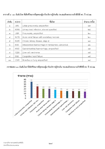 กรำฟแสดง ๑๐ อันดับโรค ที่เสียชีวิตมำกที่สุดของผู้มำรับบริกำรผู้ป่วยใน รพ.สมเด็จพระนำงเจ้ำสิริกิติ์ พร. ปี งป.๖๒