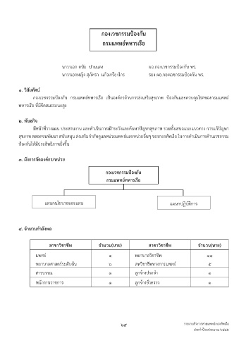 สุขภาพ ตลอดจนพัฒนา สนับสนุน ส่งเสริมก�ากับดูแลหน่วยแพทย์และหน่วยอื่นๆ ของกองทัพเรือ ในการด�าเนินการด้านเวชกรรม