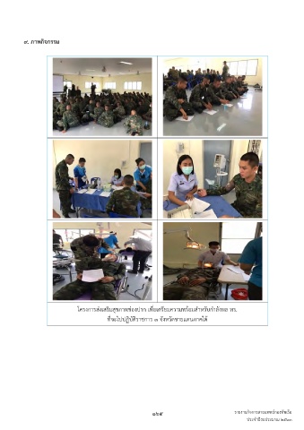 ๙. ภาพกิจกรรม โครงการส่งเสริมสุขภาพช่องปาก เพื่อเตรียมความพร้อมส�าหรับก�าลังพล ทร. ที่จะไปปฏิบัติราชการ ๓ จังหวัดชายแดนภาคใต้ 165 รายงานกิจการสายแพทย์กองทัพเรือ ประจ�าปีงบประมาณ ๒๕๖๓