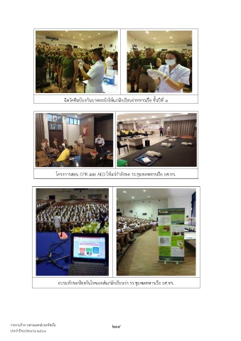 ฉีดวัคซีนป้องกันบาดทะยักให้แก่นักเรียนจ่าทหารเรือ ชั้นปีที่ ๑ โครงการสอน CPR และ AED ให้แก่ก�าลังพล รร.ชุมพลทหารเรือ ยศ.ทร. อบรมทักษะป้องกันโรคเอดส์แก่นักเรียนจ่า รร.ชุมพลทหารเรือ ยศ.ทร. รายงานกิจการสายแพทย์กองทัพเรือ 214 ประจ�าปีงบประมาณ ๒๕๖๓