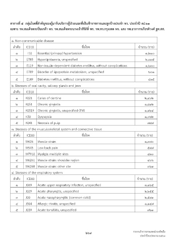 ตำรำงที่ ๕ กลุ่มโรคที่ส�ำคัญของผู้มำรับบริกำรผู้ป่วยนอกที่เป็นข้ำรำชกำรและลูกจ้ำงประจ�ำ ทร. ประจ�ำปี งป.๖๓