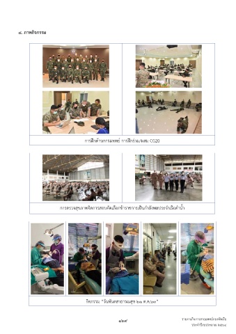 ๘. ภาพกิจกรรม การฝึกด้านการแพทย์ การฝึกร่วม/ผสม CG20 การตรวจสุขภาพจิตการสอบคัดเลือกข้าราชการเป็นก�าลังพลประจ�าเรือด�าน�้า กิจกรรม “วันทันตสาธารณสุข ๒๑ ต.ค.๖๓” 169 รายงานกิจการสายแพทย์กองทัพเรือ ประจ�าปีงบประมาณ ๒๕๖๔